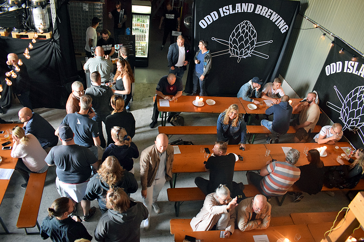 Vilken succé det blev när Odd Island hade premiär för sitt taproom. En blandad publik såg till att dricka en hel del öl och skapa god stämning.