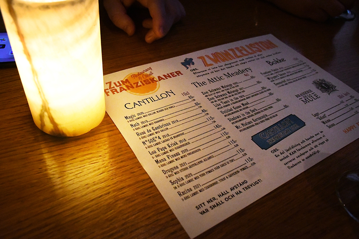 Menyn var ett paradis för den som gillar syrliga öl och mjöd.