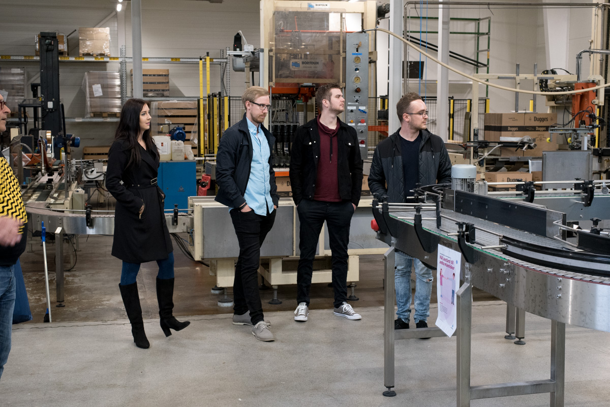 Stina Kohl, Ludvig Brewitz, Fredrik Hamberg och Marcus Dahlqvist följde med på en visning av Dugges bryggeri.