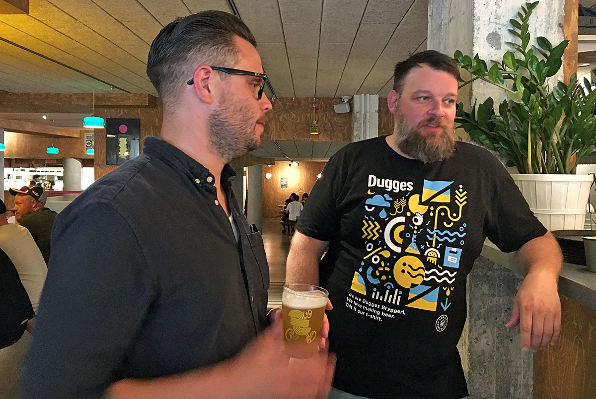 Anton Cohén och Tomas Halberstad drack öl och pratade förmodligen också om öl under lördagens event på Lådan i Stockholm.