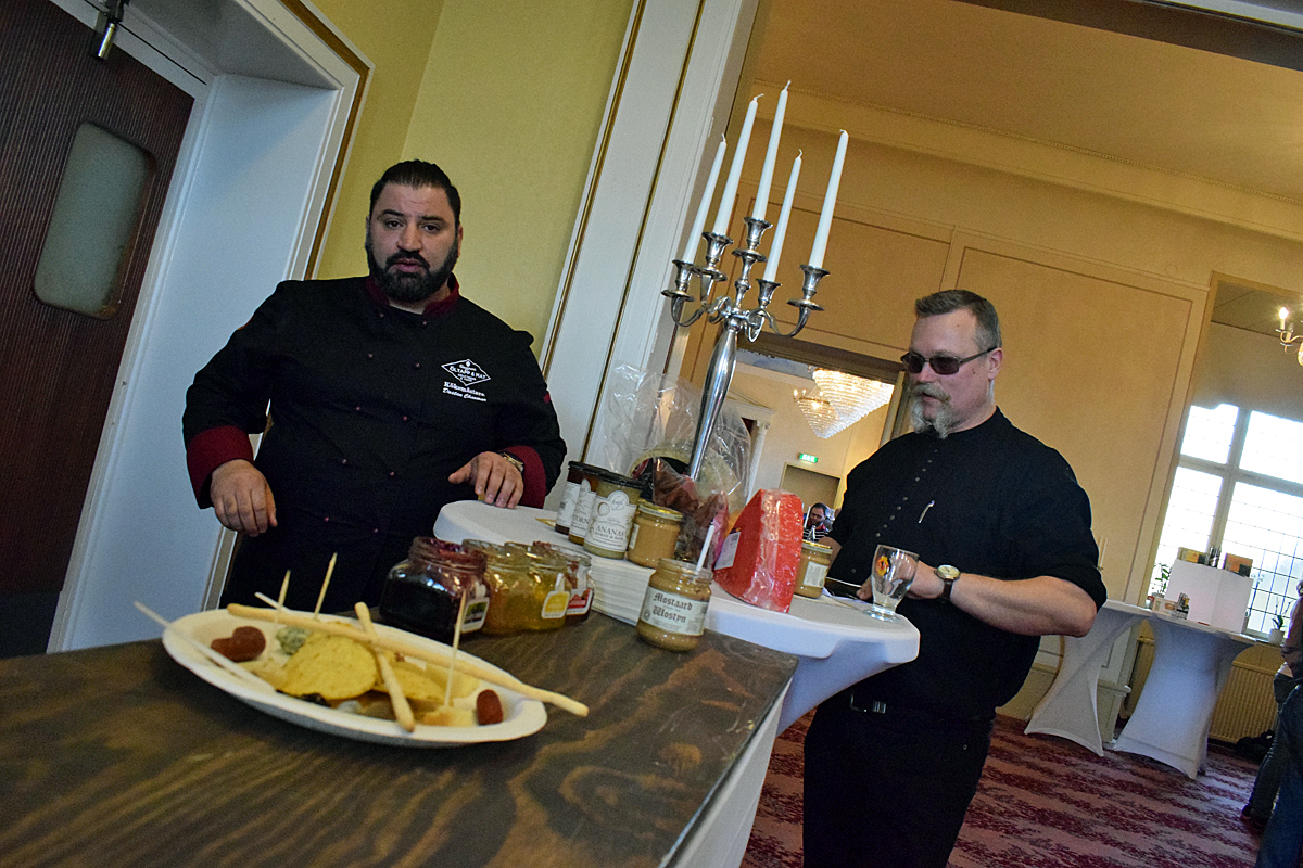 Dastan Chaomar såg till att det fanns mat tillgängligt för gästerna. Pär Larsson var mer intresserad av de olika ölen till en början.