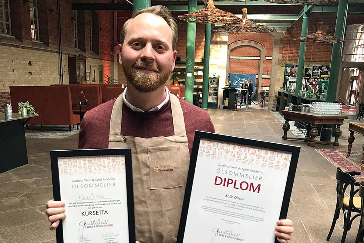 – De fick de skriva två teoretiska prov, bland annat ett par essäfrågor. De fick också prova öl och bestämma öltyper samt identifiera defekter. Det hela avslutades med att de individuellt fick göra ett praktiskt och muntligt prov där de ställdes inför en gästsituation där de skulle servera öl i rätt glas samt rekommendera öl, kommenterar Anders Öhman på arrangerande Gustibus.