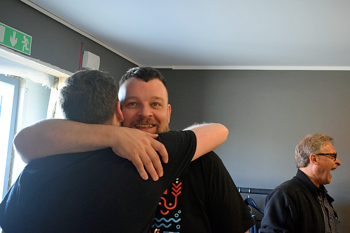 Tomas Halberstad var en av många som kramades när det kom en massa vänner till Dugges bryggeri.