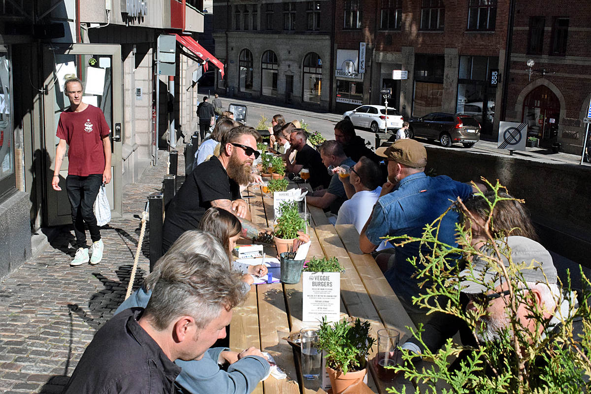 Uteserveringen fylldes snabbt av öldrickande människor.