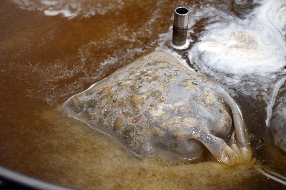 Det är i Olofstorp lite öster om Göteborg som Per Karlsson har sin verksamhet i ett garage. Tidigare har han köpt in vört till sina båda varumärken, men numera brygger han själv. Cirka 150 liter ska det bli vid varje bryggning.