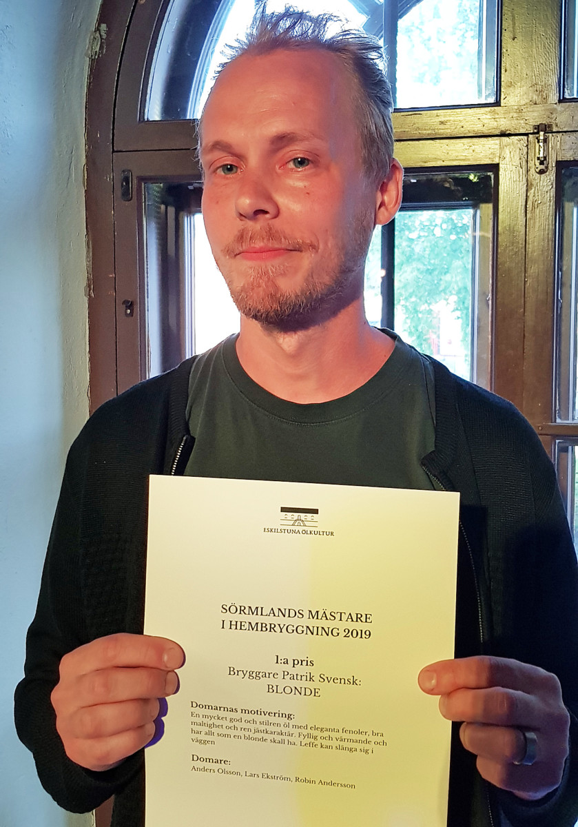 Patrik Svensk är den förste som kan titulera sig sörmländsk mästare i hembryggning.