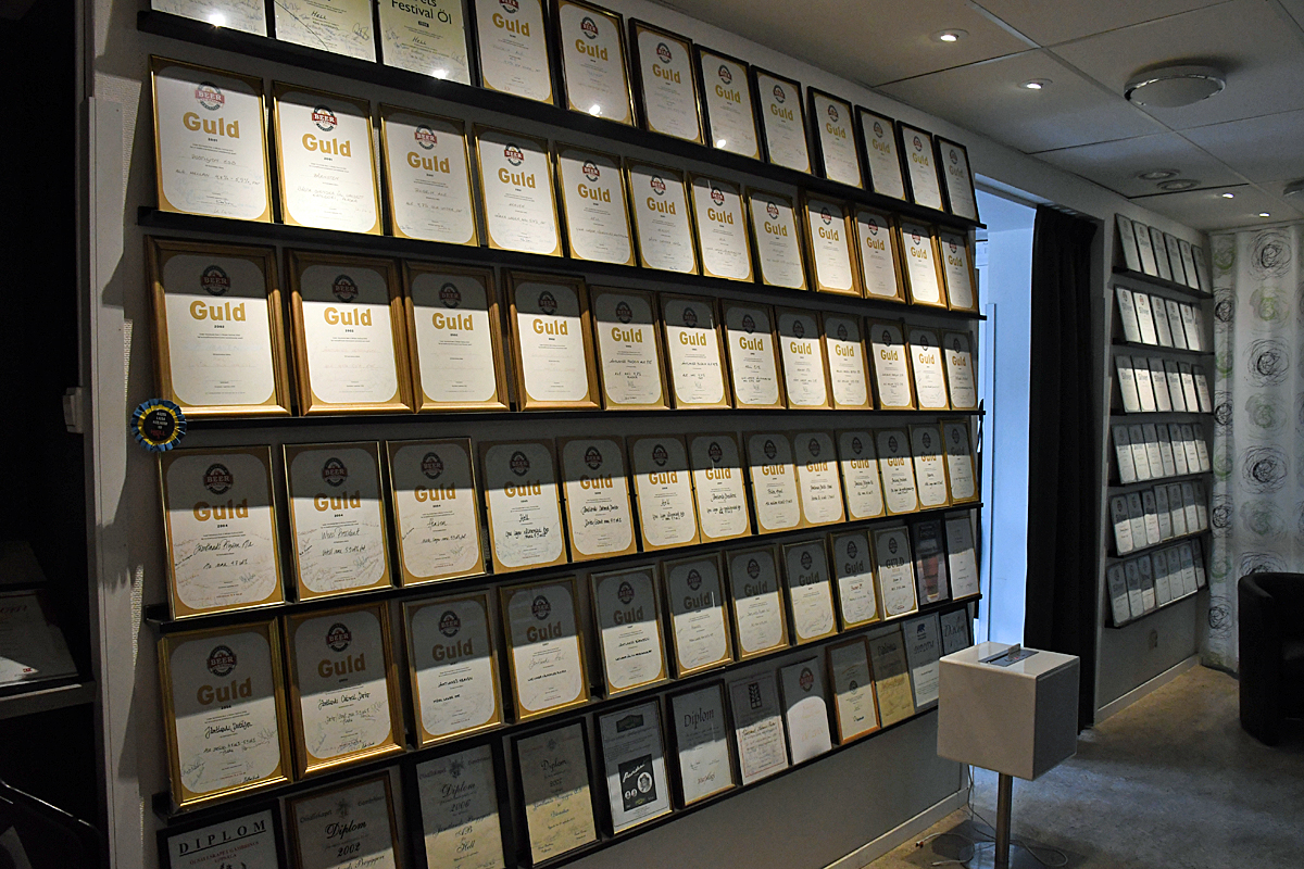 De två ölen är också en av anledningarna till att Jämtlands Bryggeri har samlat flest medaljer av alla i Stockholm Beer & Whisky Festivals årliga öltävling. På en av bilderna här ovan kan ni se rummet där alla diplom från den och andra tävlingar är samlade. Då ska ni också veta att det finns en vägg till med utmärkelser.