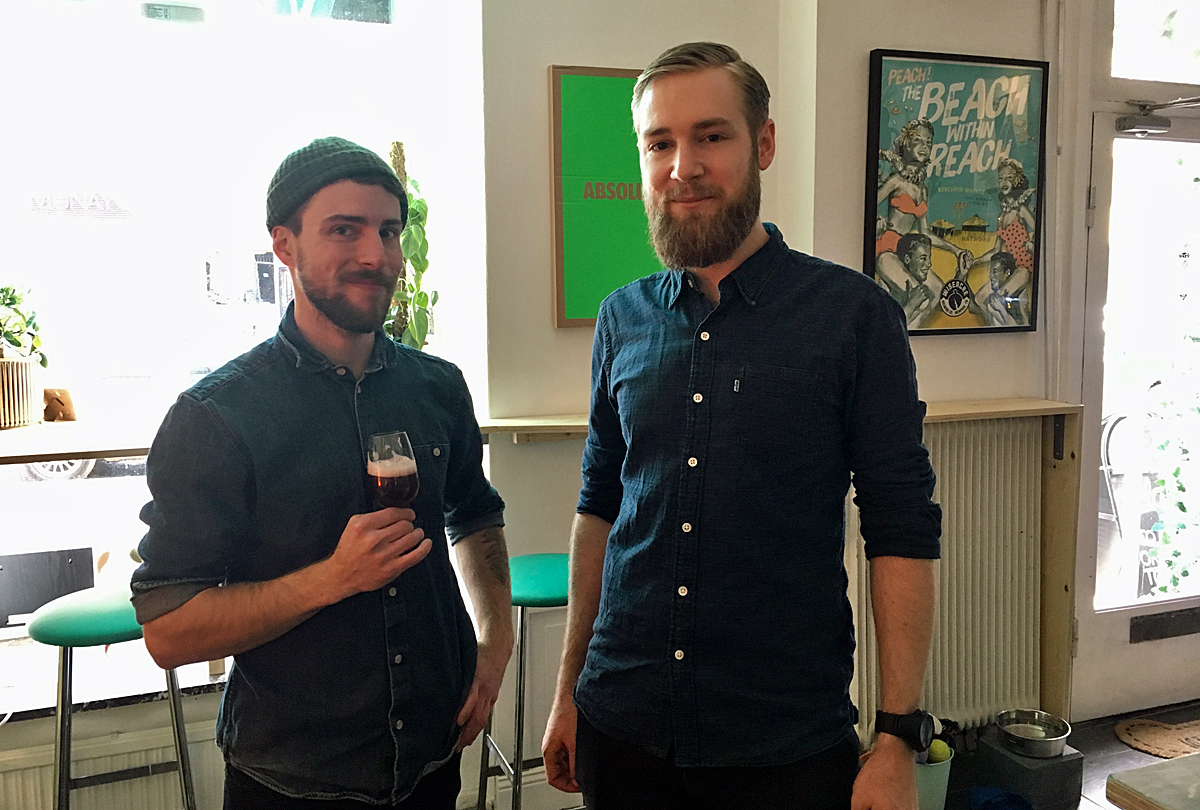 Aiden Jönsson från Bretty Fingers tillsammans med Isac Lagerstedt som var delaktig i bryggandet av "Synthesis, Batch 1"