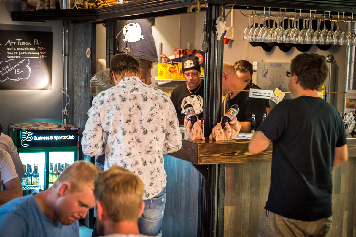 Göteborgsbryggeriet Två Feta grisar har under ganska lång tid haft planer för sin provsmakningsbar. Bryggeriet ute i Aröd hade nu alla tillstånd på plats och med baren färdigbyggd var det premiärdags.