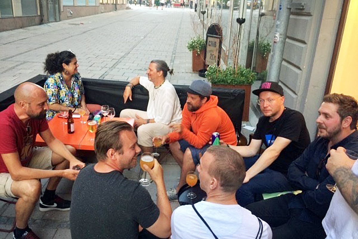 Det var gott om folk och trevlig stämning på uteserveringen under permiären.
