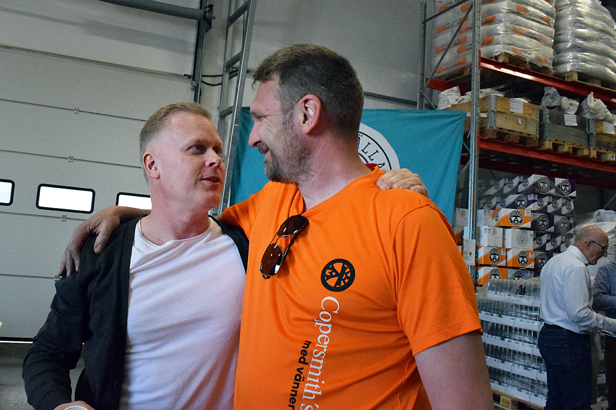 Magnus Mårdberg från Södra Maltfabriken hann med att krama om Petri Karhukorpi.