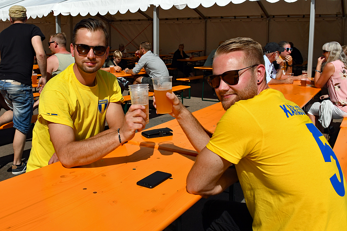 Birger Carlsson och Jesper Karlsson värmde upp med öl inför Sveriges match mot Tyskland i fotbolls-VM.