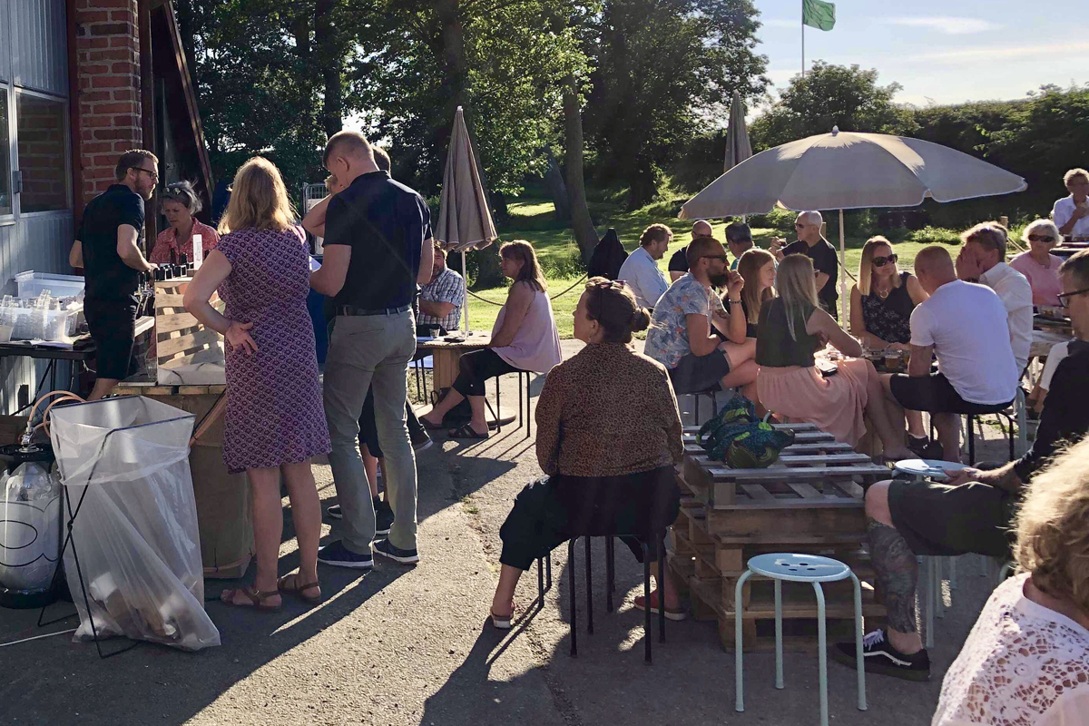 – Vi fick bygga bord av lastpallar och ölfat för att alla skulle få plats och vi hade till och med två gäster som hjälpte till för att vi skulle hinna med att servera alla. Vädret, med sol och 25 grader bidrog också till den lyckade kvällen, fortsätter Magnus.
