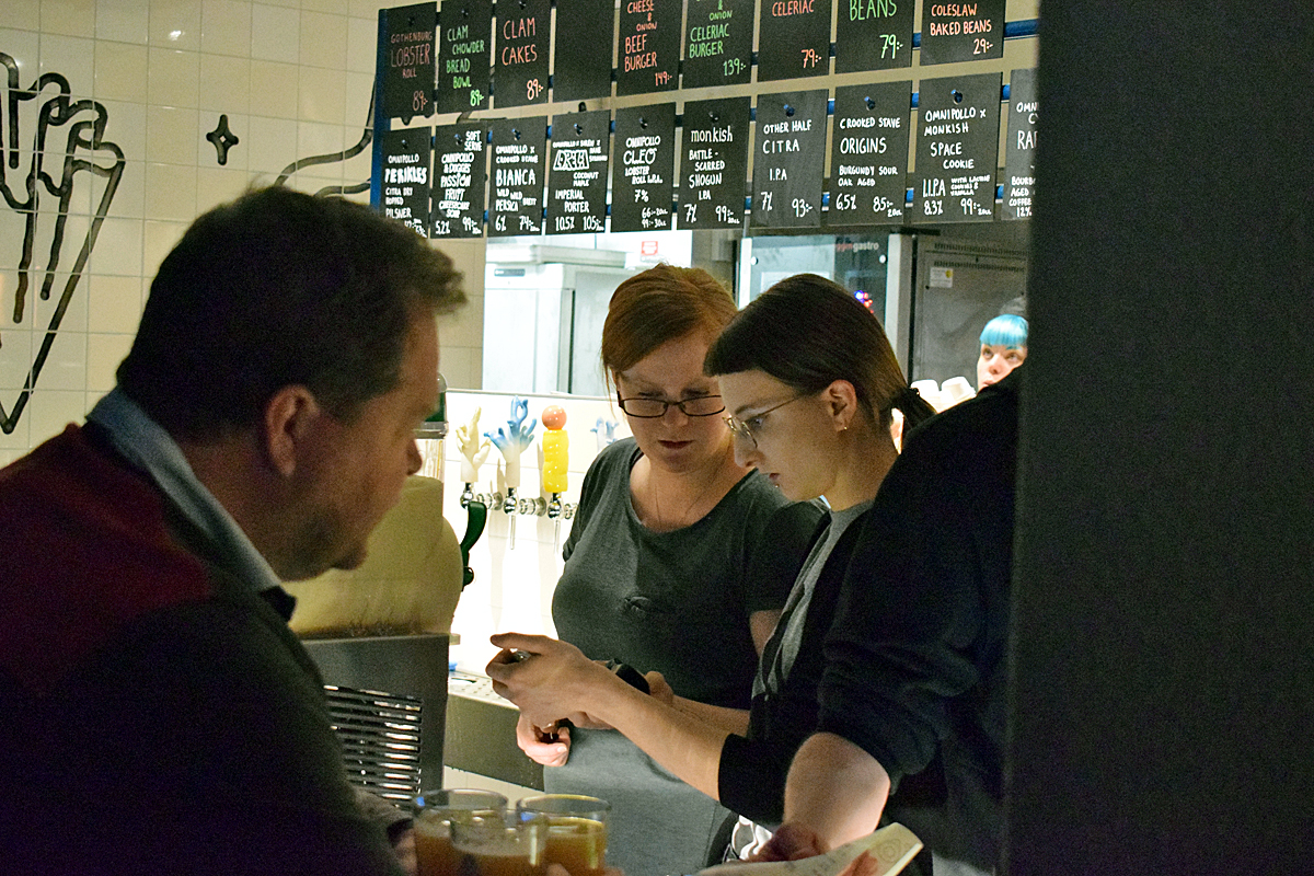 På Brewers Beer Bar var det tap takeover med Omnipollo och 16 olika öl fanns att välja mellan. Där samlades många ölentusiaster innan det var dags för en kort promenad till Omnipollos premiär.
