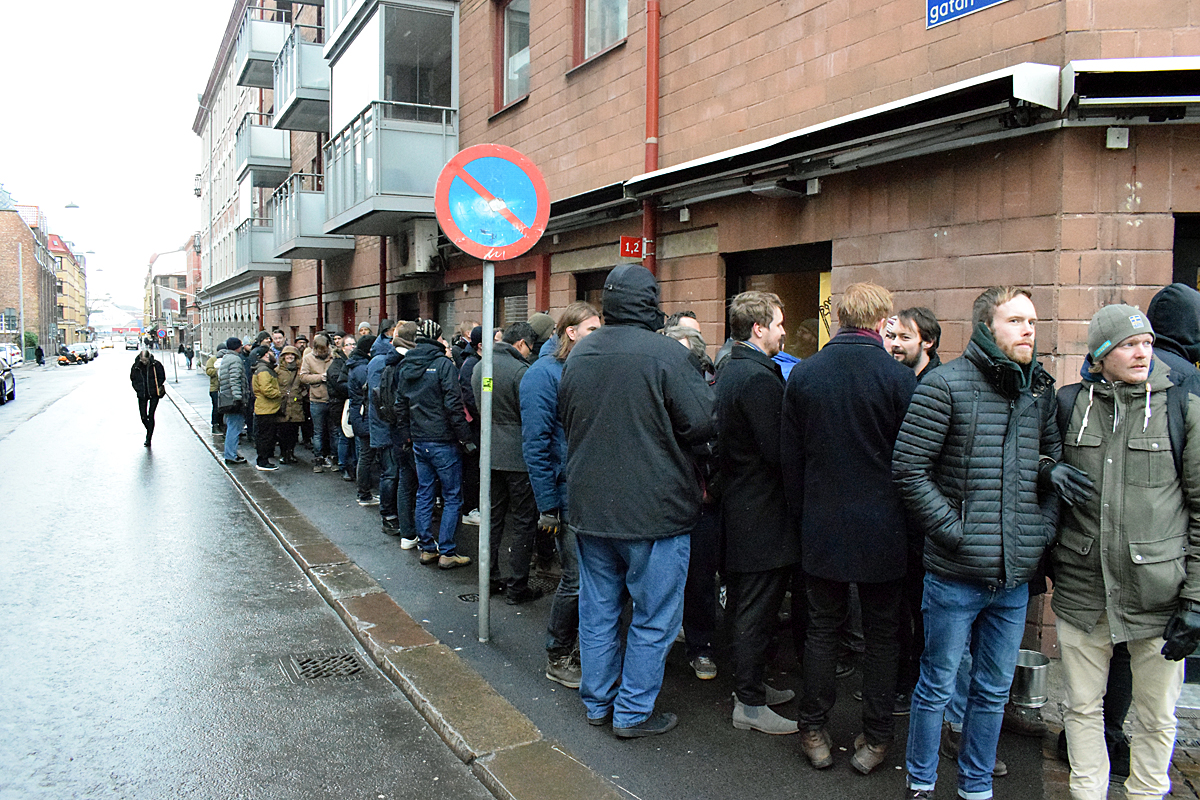 – Jag kom från jobbet och tänkte att det inte var någon mening med att åka hem. Det blev en öl på Brewers Beer Bar och sedan gick jag hit, sade en något frusen Niklassson innan dörrarna öppnades.