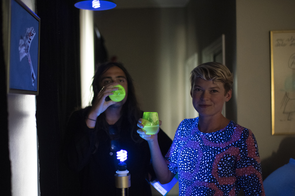 Haidar Mahdi och Natalie Edman var två av besökarna som provade den självlysande ölen.