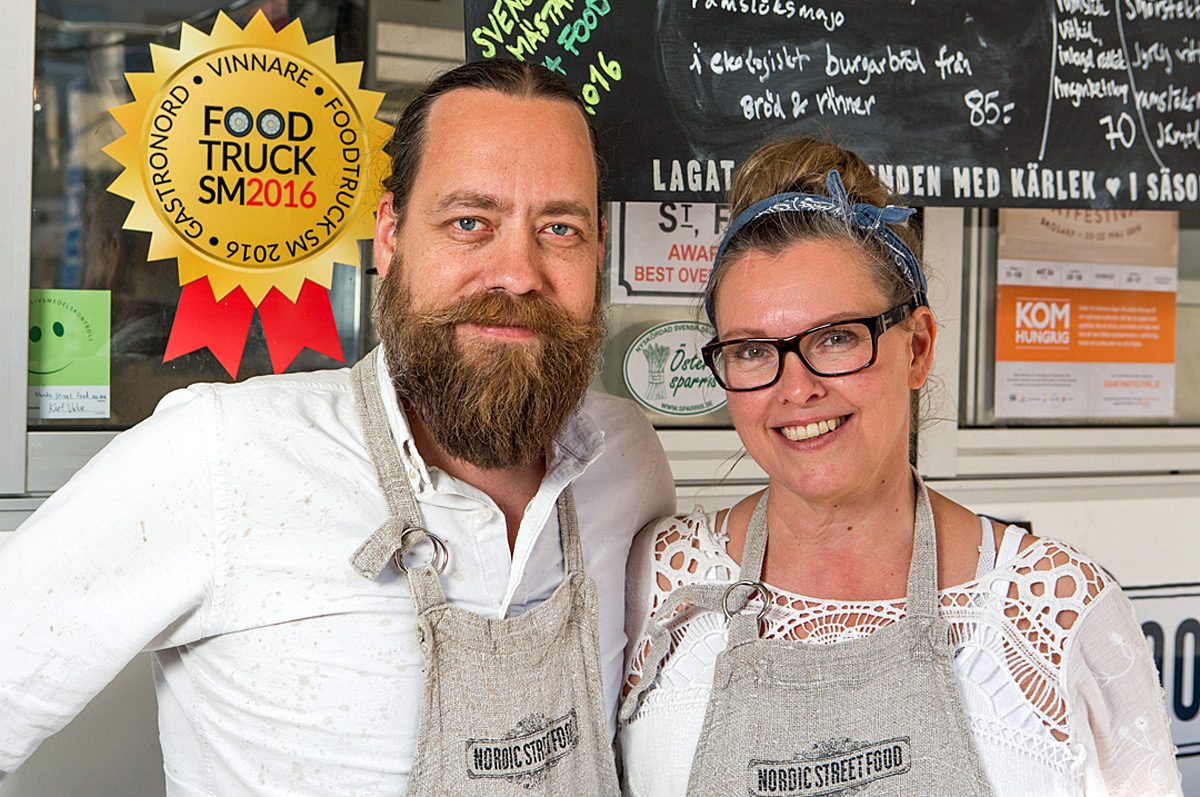 – Det blev ett begrepp först för fem till sex år sedan och vi lärde oss den hårda vägen att det är en kort säsong i Sverige. Vi ville leva på det här året runt, säger Jens Almgren, som driver Nordic Street Food tillsammans med Pernilla Elmquist.