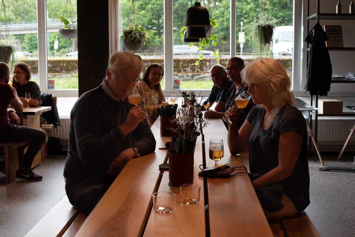 I Jonsered höll Poppels öppet för en ölprovning med bryggaren Edvin Wallmo i spetsen. Även här hade många tagit tillfället i akt och fyllde restaurangen, om man bortser från lite coronaluckor här och där bland borden.