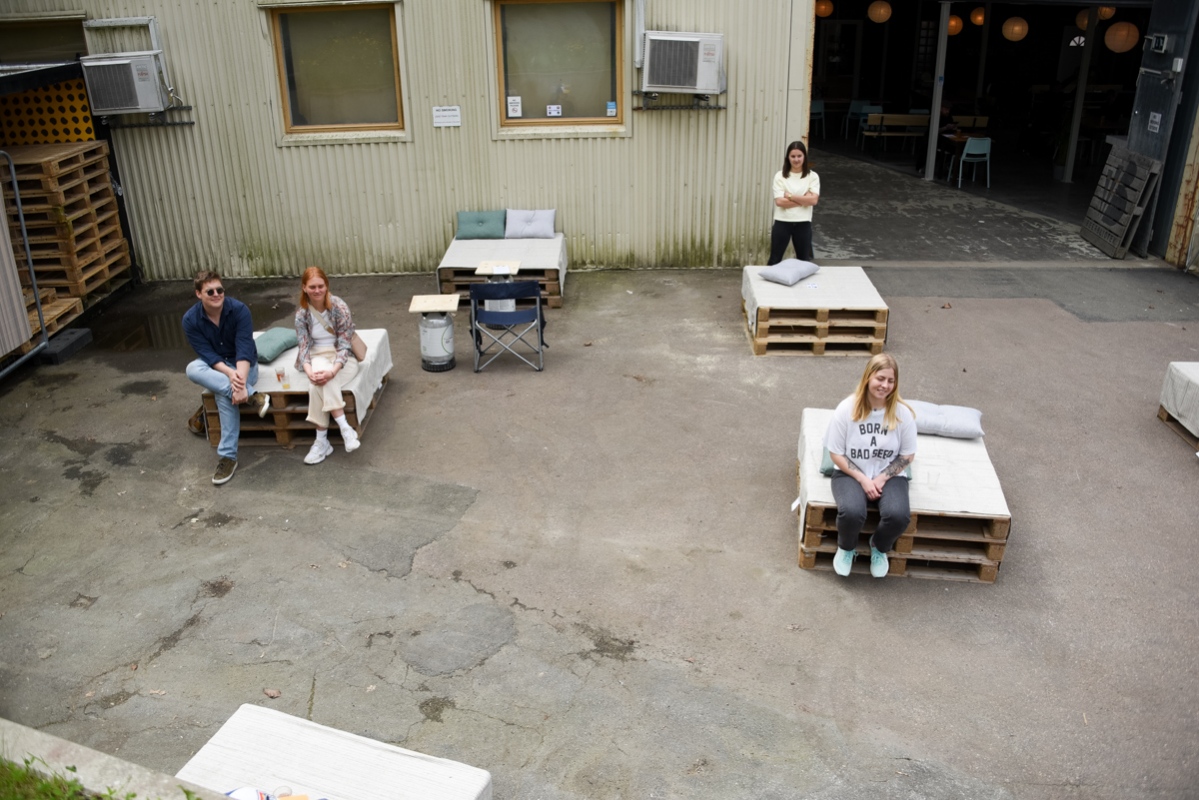 "Stolarna" är lastpallar, något som Darryl de Necker tycker passar konceptet väldigt bra.