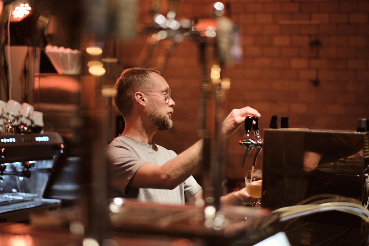 Joel Carlsson hällde upp öl från Rocket Brewing.