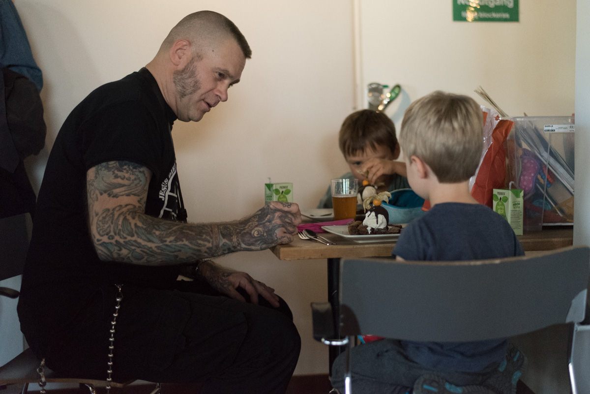 Yngsta gästerna Omar och Norton Lagerström kom i sällskap med pappa Robert Lagerström från Maltesen, som satsade på kolhydratchock för att hålla killarna lugna medan han testade en eller annan öl.