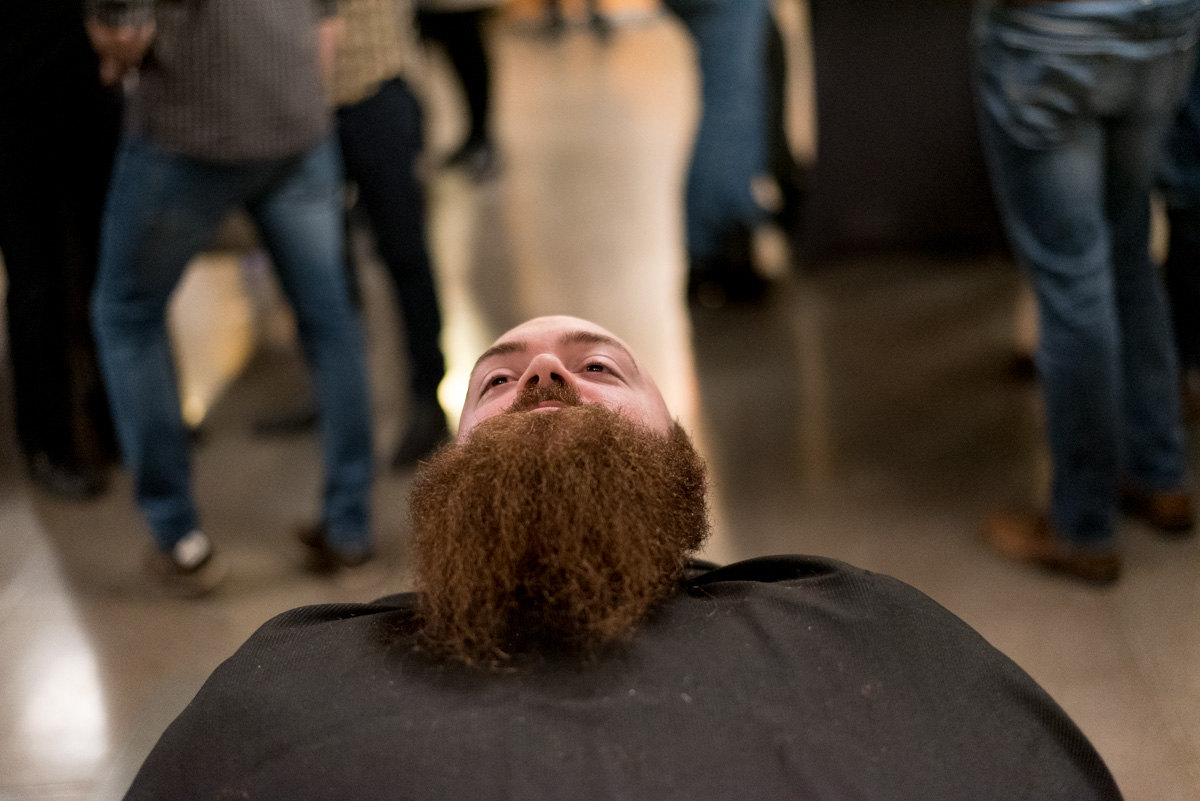 Utanför ölhallen fanns annat att roa sig med, med montrar för bland annat Maltmagnus och Viking Malt. Och så en barberare då, vilket Eric McIntire utnyttjade.