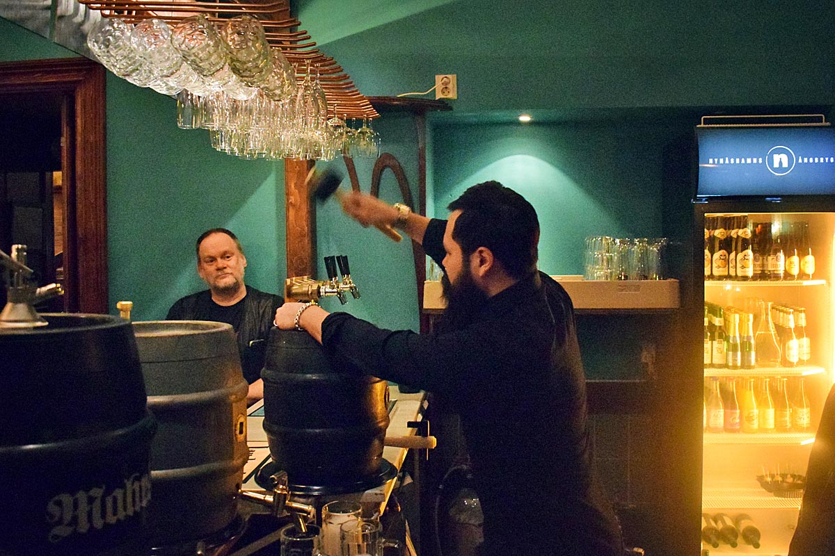 I den ordinarie baren serverades det tyska öl från klockan 16 och en timma senare öppnades de första självrunna faten i den renoverade Bakfickan hos Zum Franziskaner.