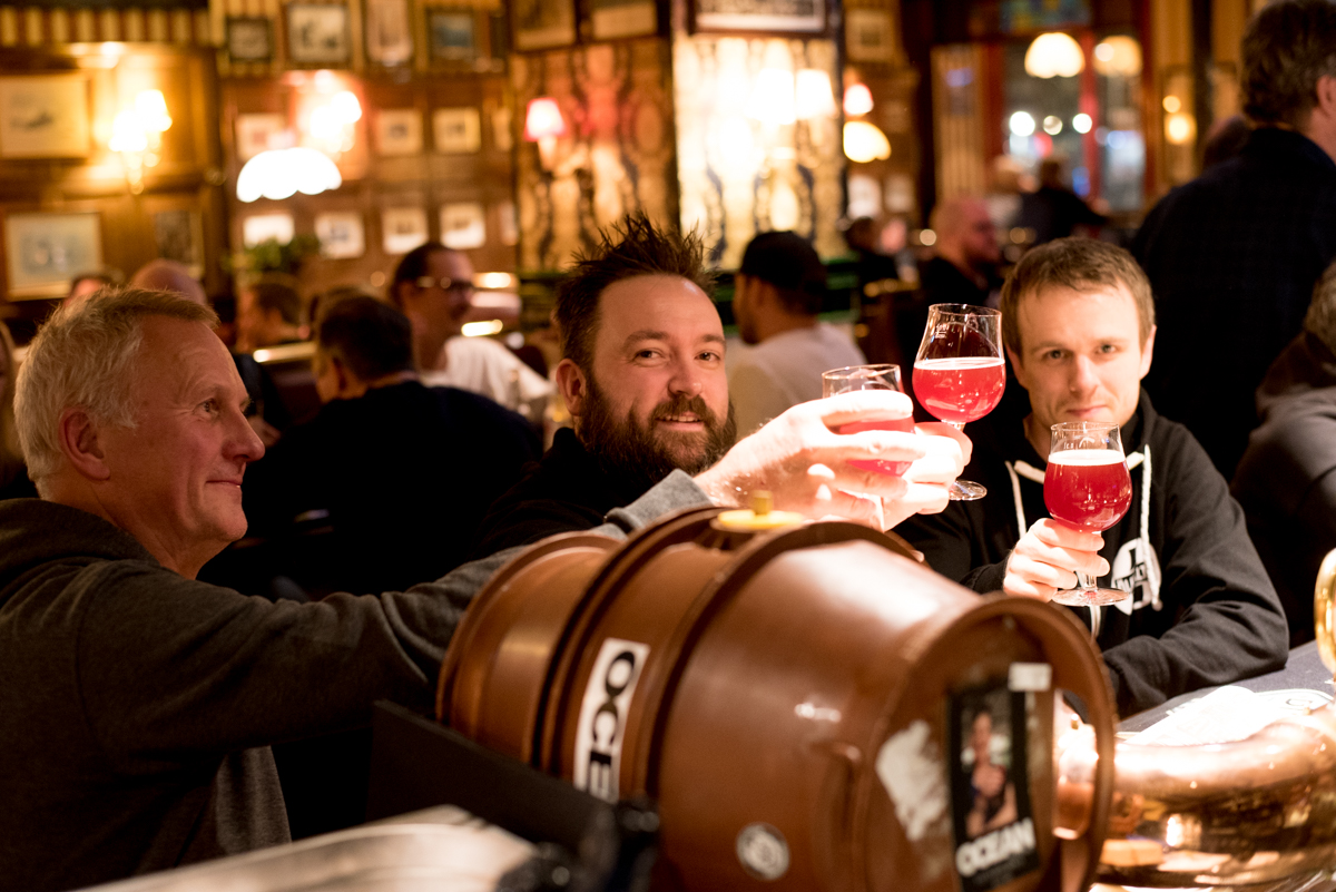 Det var tätt mellan Poppelsmedarbetarna på Bishops Arms, men även många andra som tagit sig till Järntorget för att vara först med att smaka på den nya ölen.