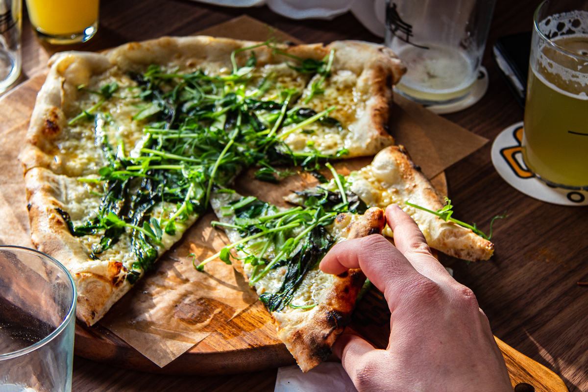 Det är fokus på pizza när det gäller mat i baren.