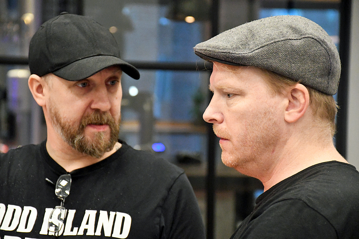 Daniel Forsman från Odd Island var på plats för att hjälpa till under första bryggningen. Johan Lundin lyssande intresserat.