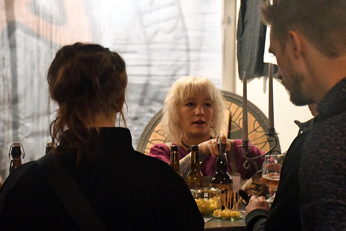 Denise Nolemo fick servera en hel del mjöd från Mjödner i Umeå.
