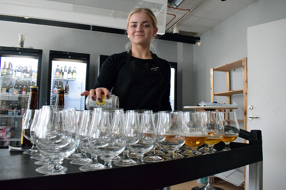 Louise Södergren serverade en stor mängd glas till domarna under de dagarna när det dömdes öl till En Öl- o Whiskymässa.