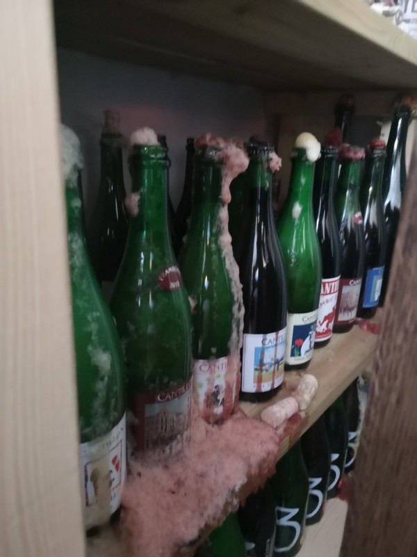 I rummet förvarades drygt 400 flaskor och burkar, utöver lambic fanns även starkare öl som stout. De klarade sig. Men 141 flaskor gjorde det inte och bland dem fanns öl som Cantillon Blåbär, Cantillon Lou Pepe Kriek, Cantillon Lambic Dáunis och 3 Fonteinen Zenne y Frontera …