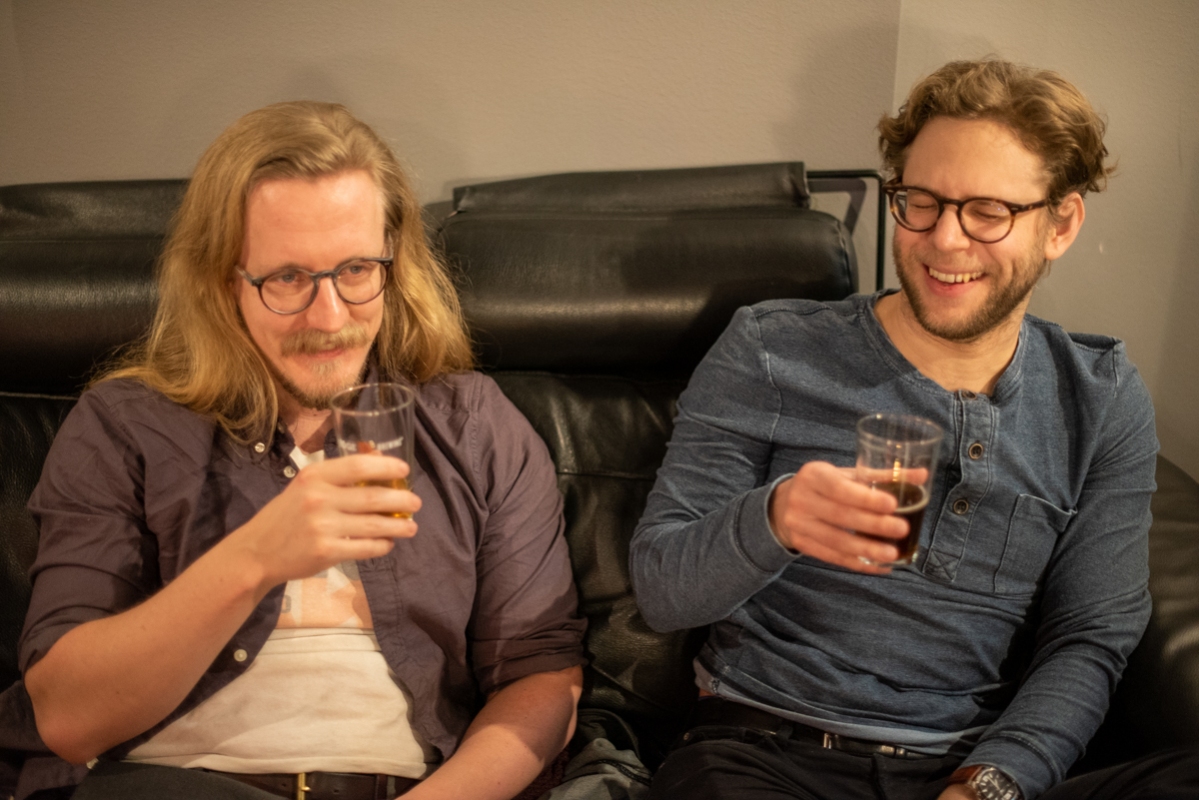 Jesper Blidkvist och Fredrik Lagerstedt tyckte att det var roligt att prova öl de bekantat sig med förr som nu fanns på cask på Haket. Foto: Peter Lindh