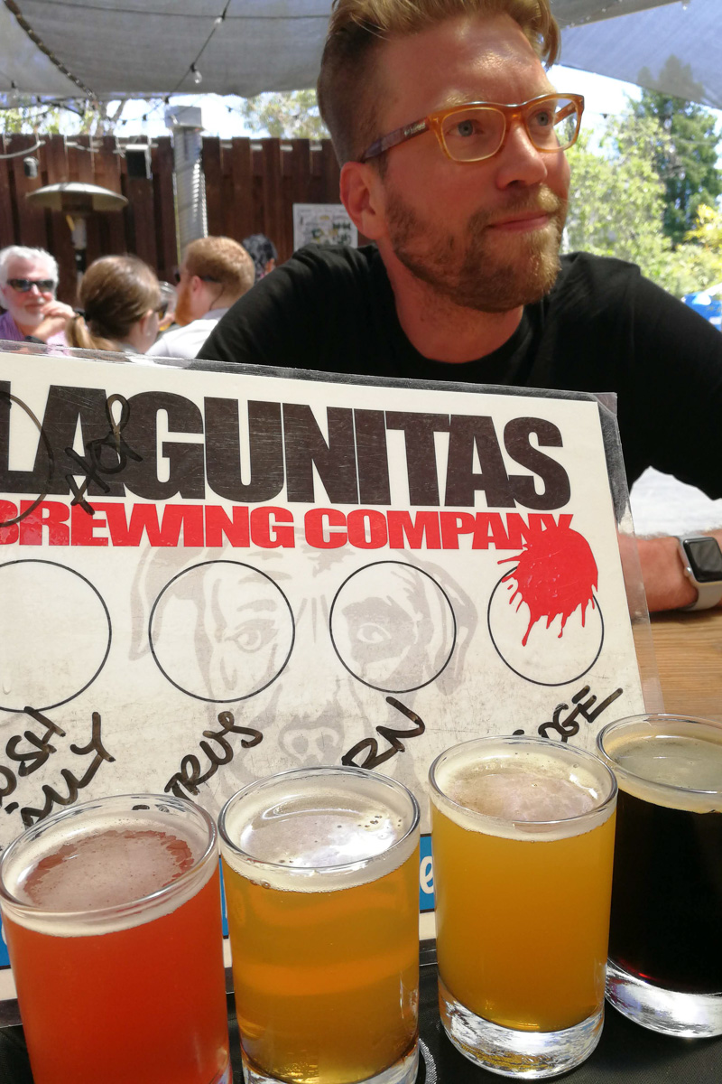 Erik väntar på att få smaka på Lagunitas öl.