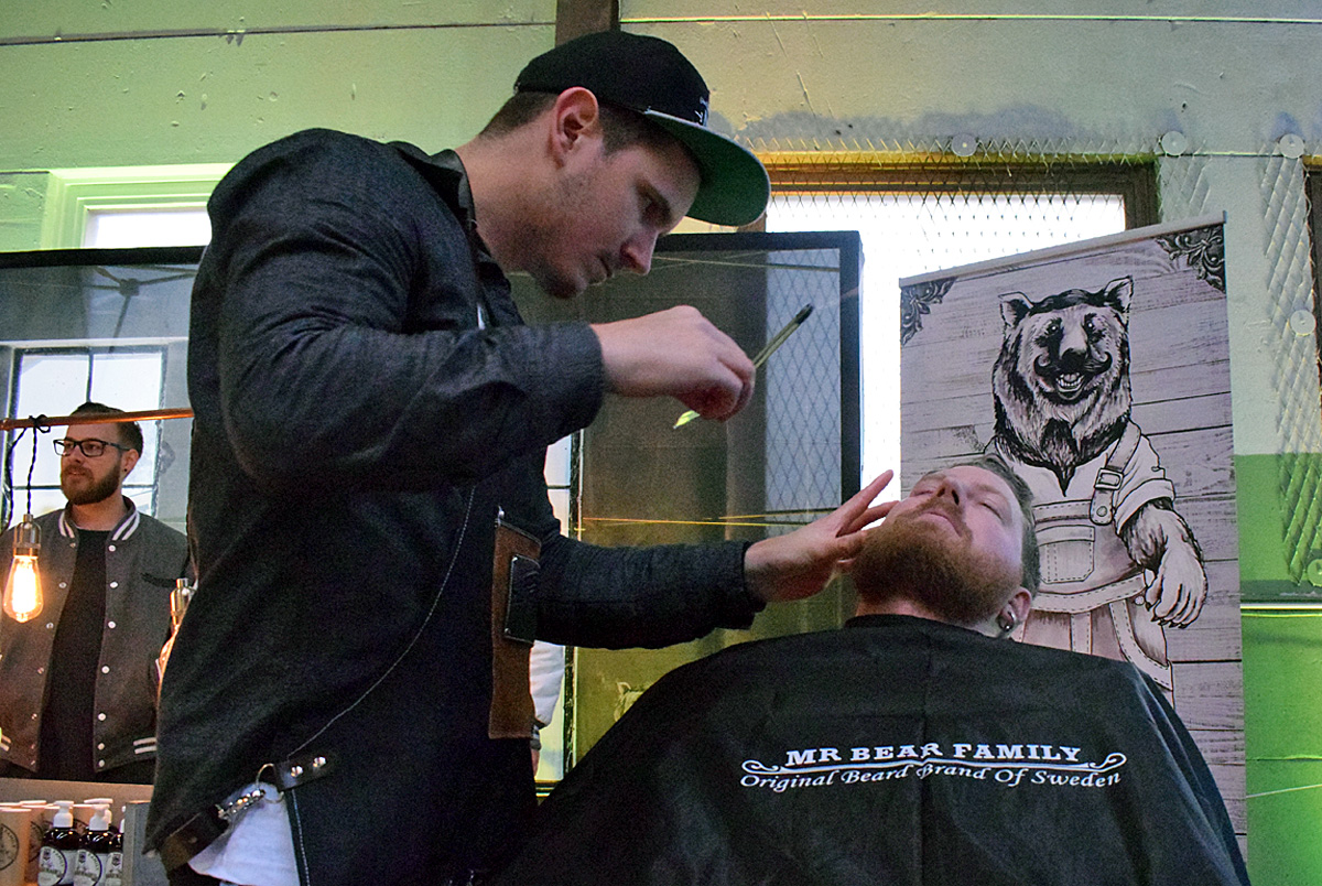 Skäggtrimning var en av möjligheterna under måndagen hos Beerbliotek. Axel Hagman tog chansen.