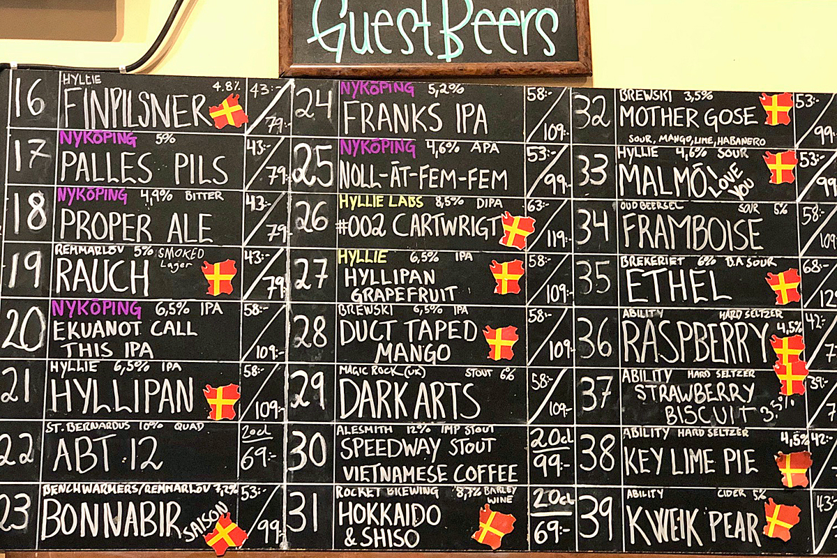 Hos Taproom blev det fem öl vardera från Nyköping Brewing Company och Hyllie Bryggeri under en gemensam tap takeover.