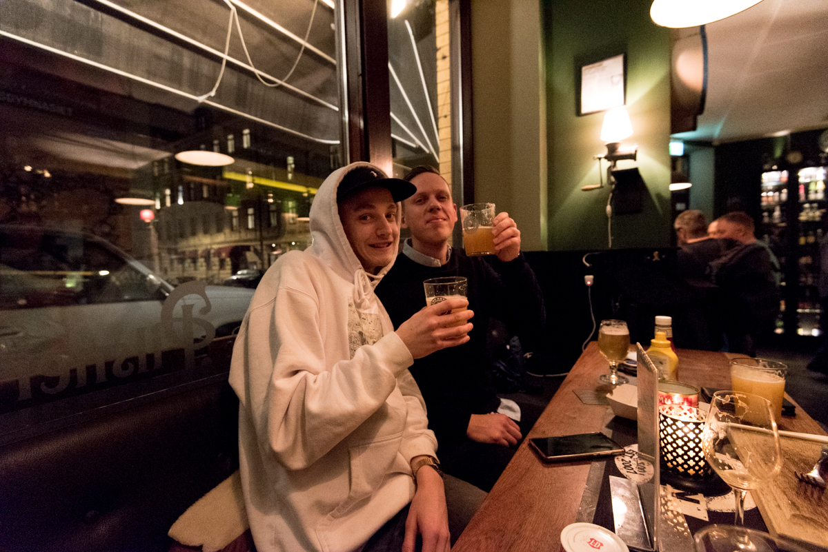 Hannes Olsson var starkt uppmuntrande inför sin egen medverkan på bild i Beernews. Kompisen Andreas Persson hängde på. Vanligtvis hänger de på en annan pub i Göteborg, fast då i rollen som bartender och kökschef på Brewdog.