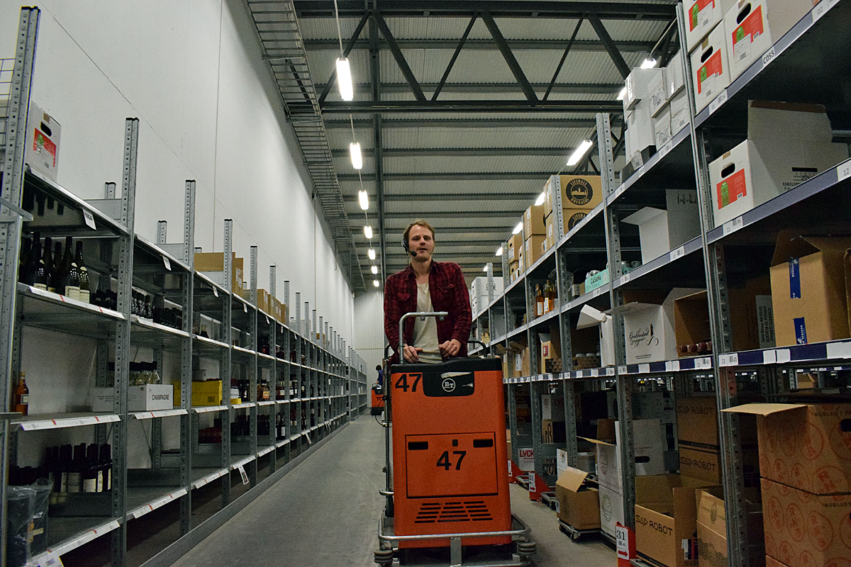 En bra hjälp finns också för de personer som åker runt och hämtar flaskor. I hörlurarna finns nämligen en automatisk röst som berättar var på lagret dina flaskor finns.