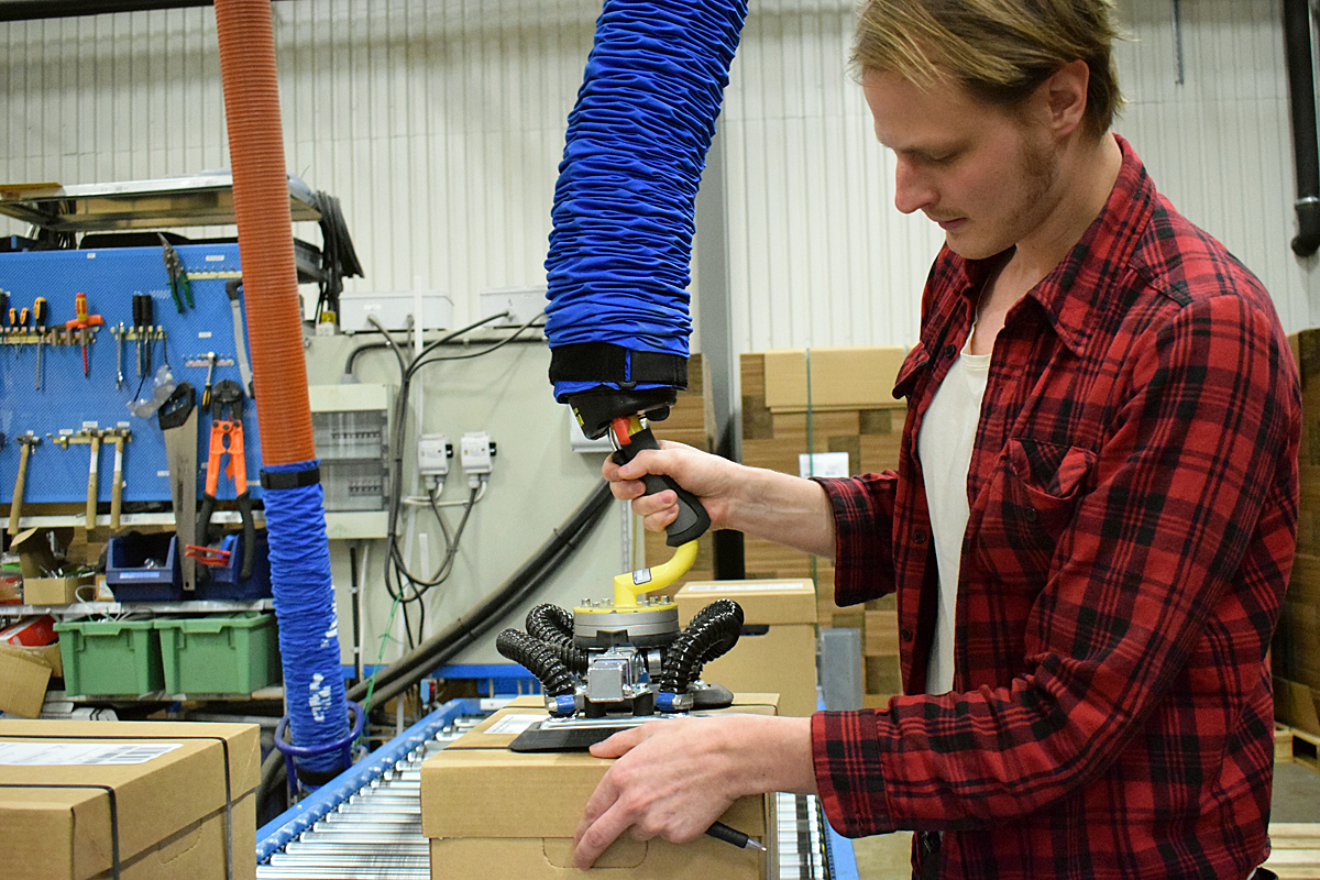 – Hon i hörlurarna säger hela tiden vart jag ska åka. Det är praktiskt, men slipper tänka själv, säger Samuel Åsberg som är en av de anställda på Örebrolagret.