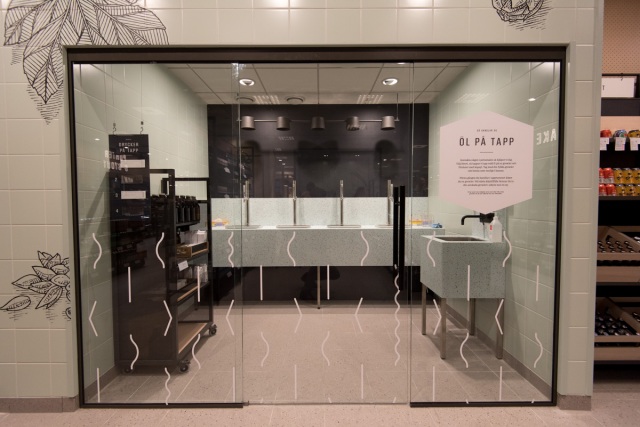 En annan nyhet för Systembolaget var tapkranar, fyra finns i ett eget rum för fyllning av growlers. Men den som vill fylla sin growler får nöja sig med alkoholfritt. Vid öppningen var två kranar påkopplade. Den ena med alkoholfri Mariestads Export och den andra med GBG Sodas julmust.