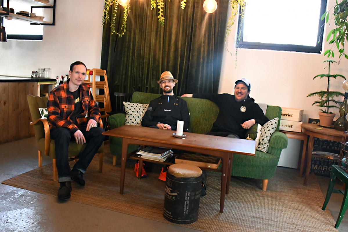 Mattias Malm, Peter Halldén och Martin Sunesson inne i restaurangen Spiseriet, som bland annat serverar de båda bryggeriernas öl.