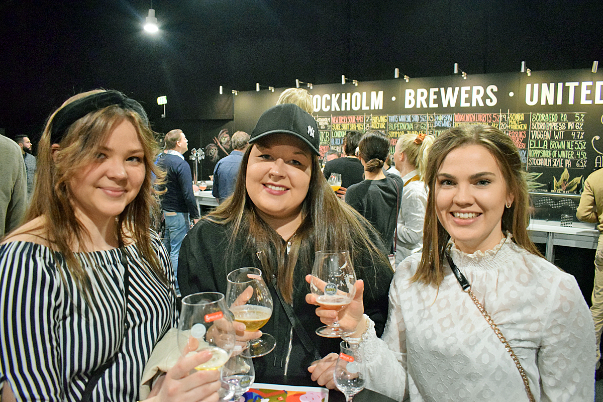 Jenny Bergström, Emma Vesterlund och Carolina Prost provade sig fram genom ölutbudet på Malt, Mat & Destillat.
