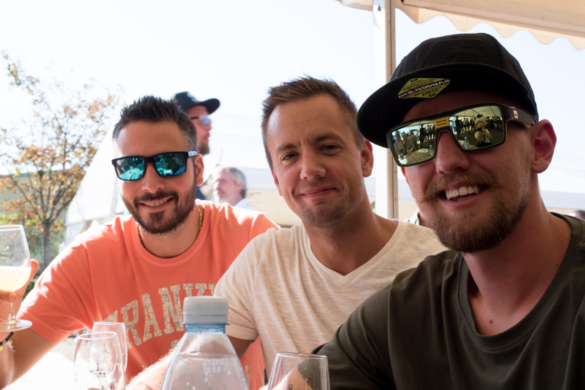 Jonny, Matthias och Danny gillar utbudet av öl och människor på festivlen.