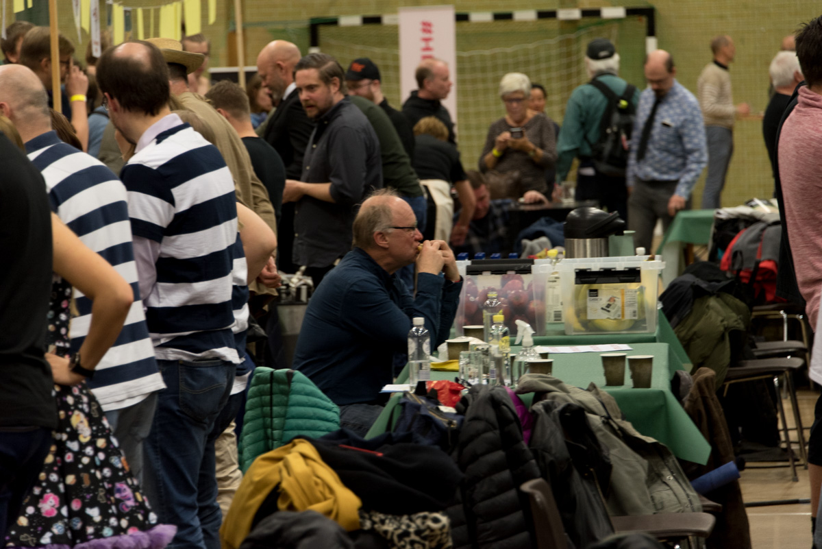 Men det var ändå massor av hembryggare på plats och stora mängder besökare som gjorde att det stundtals var svårt att ta sig fram mellan båsen. Redan innan tävlingen började var det långa rader med människor i kö som väntade på att få komma in.