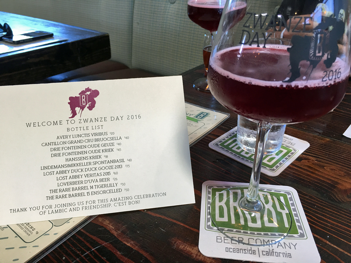Det blev förstås en del amerikanskt också på ölmenyn när Zwanze Day genomfördes hos Bagby Beer Company i Oceanside norr om San Diego. Foto: Mike Lindeblad.