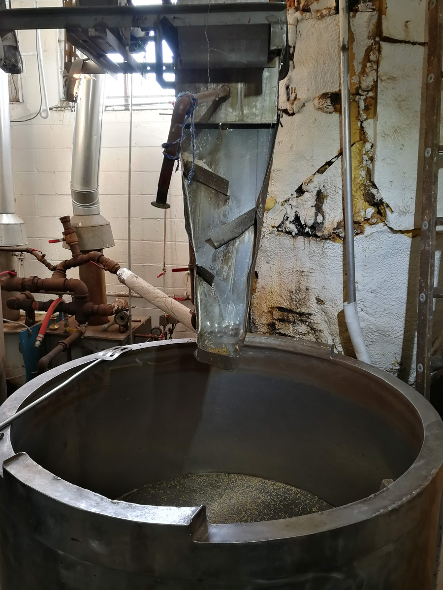 Inne i bryggeriet såg det ut mer som en mekanisk verkstad än ett bryggeri. Det var uppenbart egenkonstruerade lösningar och buckliga kärl. Inte precis smutsigt men välanvänt. Och hanterat med passion. Det sägs att ägaren har badat i mäskningskärlet. Jag skall kanske inte ge mig in på några gissningar men det såg ut som ett öppet, kombinerat mäsknings- och lakningskärl, vilket vi aldrig sett tidigare. Jästankarna var utspridda i resten av lokalen.