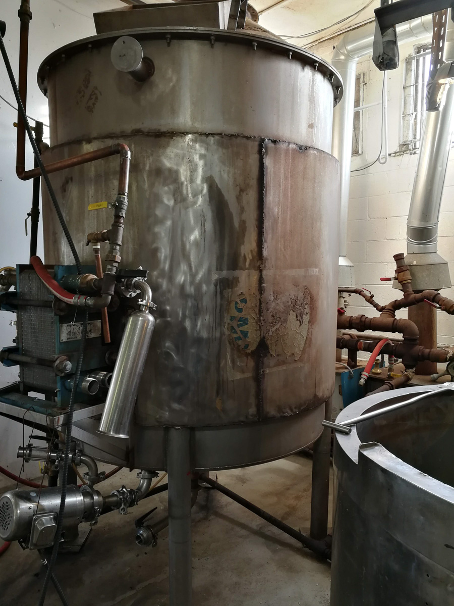 Inne i bryggeriet såg det ut mer som en mekanisk verkstad än ett bryggeri. Det var uppenbart egenkonstruerade lösningar och buckliga kärl. Inte precis smutsigt men välanvänt. Och hanterat med passion. Det sägs att ägaren har badat i mäskningskärlet. Jag skall kanske inte ge mig in på några gissningar men det såg ut som ett öppet, kombinerat mäsknings- och lakningskärl, vilket vi aldrig sett tidigare. Jästankarna var utspridda i resten av lokalen.