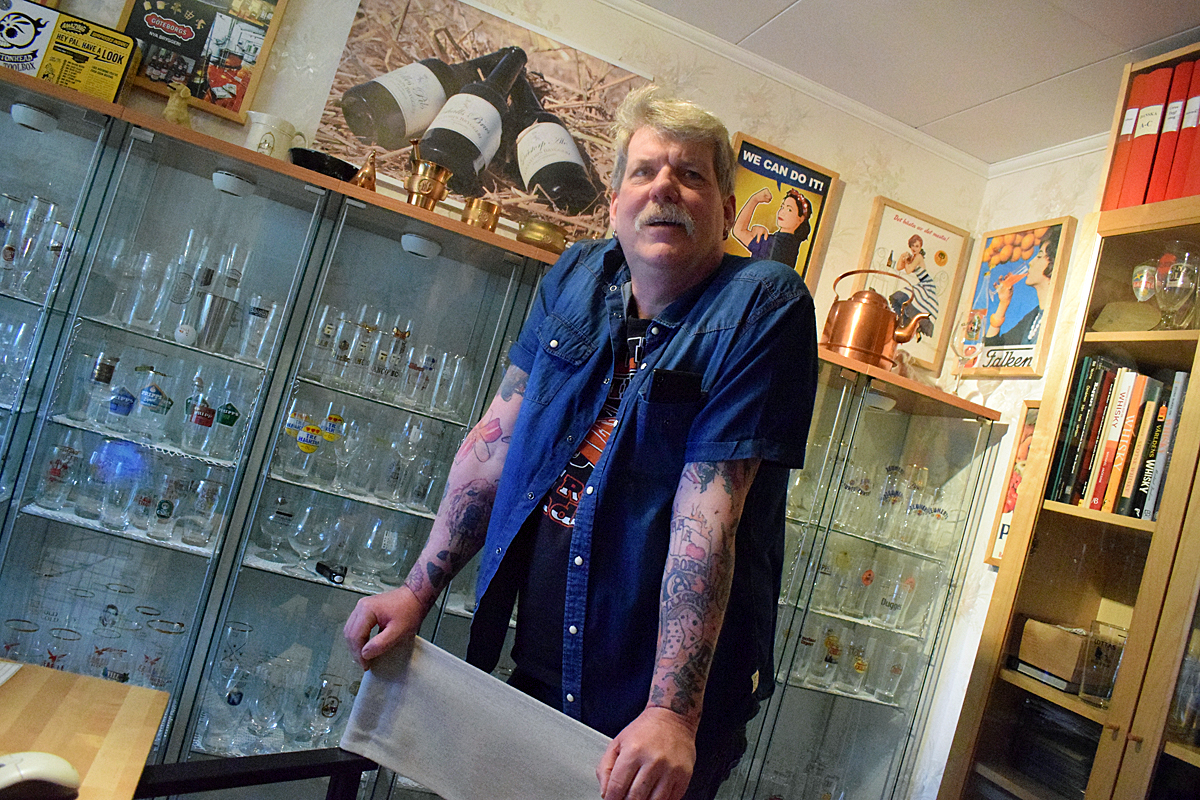 – Jag gillar att åka runt till bryggerier för att köpa glas eller få några etiketter. Fast de flesta vet nog inte vad jag heter, de säger ”här kommer han som skriver skål o ha dä gött”, säger han och skrattar.
