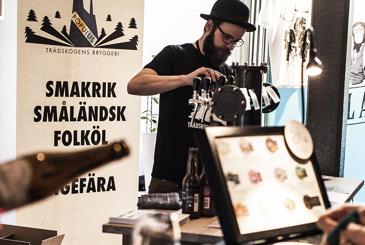 Peter M Eronsson hjälpte till i Trädskogens monter under ölfesten i Växjö. (Foto: Linnea Andersson)